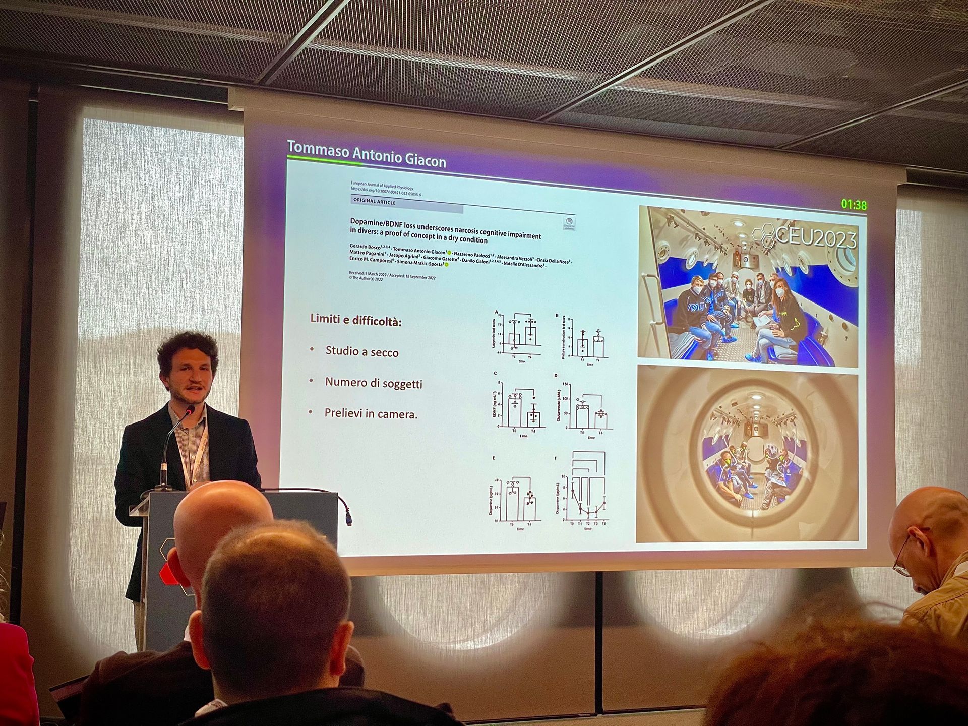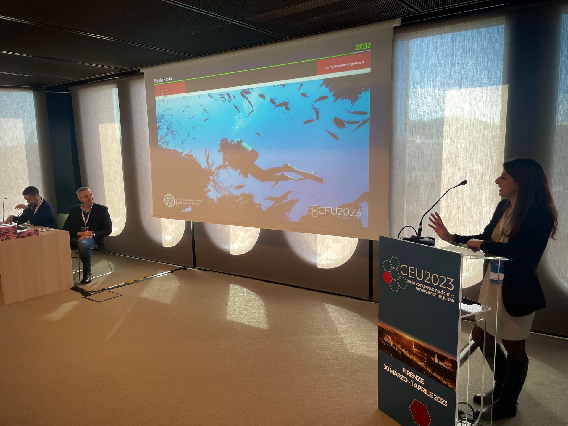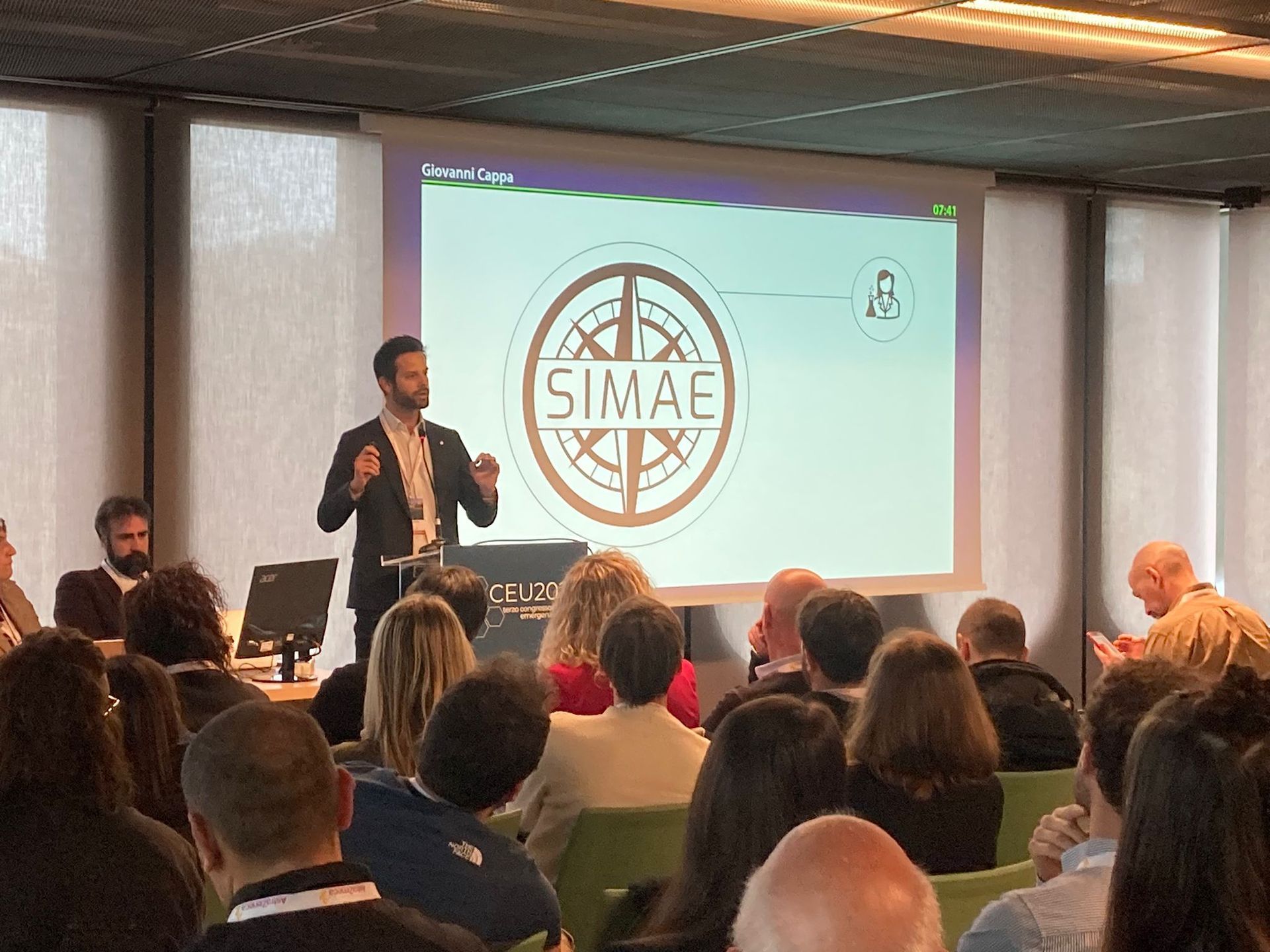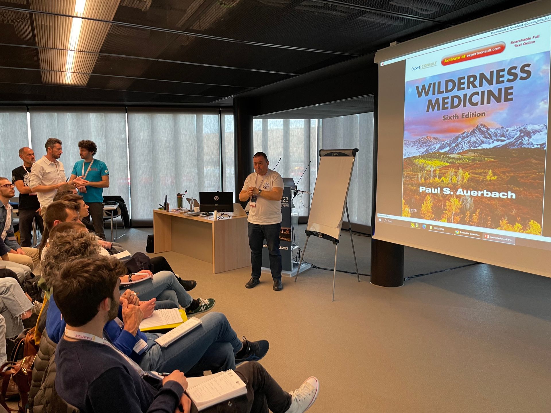 Un programma ricchissimo in cui abbiamo avuto l'opportunità di presentare la nostra società pochi mesi dopo la sua fondazione. I nostri membri faculty Luca Carenzo, Niccolò Stomeo, Tommaso Antonio Giacon, Bruno Barcella, Lorenzo Tiraboschi, Andrea Rossanese sono stati presenti fin dal primo giorno per erogare i workshop sulla medicina di spedizione insieme ad alcuni professionisti di MilesBeyond e il corso Stop the Bleed con Italian Trauma League. Abbiamo presentato le aree di focus della società: la ricerca negli ambienti estremi, le difficoltà che i ricercatori in queste aree incontrano quotidianamente (Giovanni Cappa); il ruolo del medico durante eventi endurance in ambienti con scarse risorse (Niccolò Stomeo, in foto). Abbiamo presentato alcuni esempi di ricerca in ambienti lontani dai laboratori o dagli ospedali in cui siamo abituati a lavorare, dall'ecografia in alta quota agli studi sulle patologie legate alle attività subacquee (Tommaso Antonio Giacon e Flavia Resta). Nelle altre sessioni è intervenuta anche Erika Poggiali, discutendo il ruolo della ricerca nelle scuole di medicina d'emergenza-urgenza.